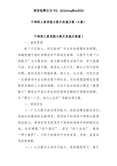 【七哥公文】2025年:(4篇)干部职工素质能力提升实施方案+更多免费公文+VX:QiGeGongWen2024+更多免费公文+VX:QiGeGongWen2024