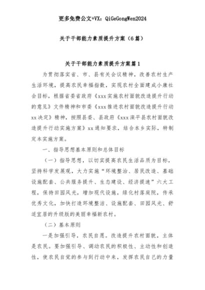 【七哥公文】2025年:(6篇)关于干部能力素质提升方案+更多免费公文+VX:QiGeGongWen2024+更多免费公文+VX:QiGeGongWen2024