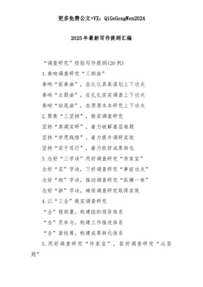 【七哥公文】2025年:2025年最新写作提纲汇编+更多免费公文+VX:QiGeGongWen2024+更多免费公文+VX:QiGeGongWen2024