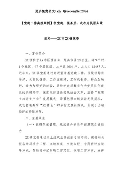 【七哥公文】2025年:【党建工作典型案例】抓党建,强基层,走在为民服务最前沿——XX市XX镇党委+更多免费公文+VX:QiGeGongWen2024+更多免费公文+VX:QiGeGongWen2024