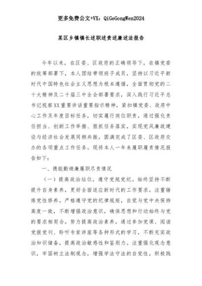 【七哥公文】2025年:某区乡镇镇长述职述责述廉述法报告+更多免费公文+VX:QiGeGongWen2024+更多免费公文+VX:QiGeGongWen2024