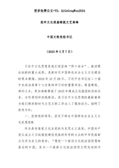 【七哥公文】2025年:筑牢文化根基铸就文艺高峰+更多免费公文+VX:QiGeGongWen2024+更多免费公文+VX:QiGeGongWen2024