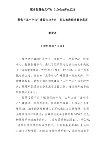 【七哥公文】2025年:聚焦“五个中心”建设主攻方向 扎实推进经济社会高质量发展+更多免费公文+VX:QiGeGongWen2024+更多免费公文+VX:QiGeGongWen2024