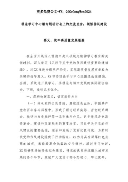 【七哥公文】2025年:理论学习中心组专题研讨会上的交流发言:领悟作风建设要义,筑牢高质量发展根基+更多免费公文+VX:QiGeGongWen2024+更多免费公文+VX:QiGeGongWen2024