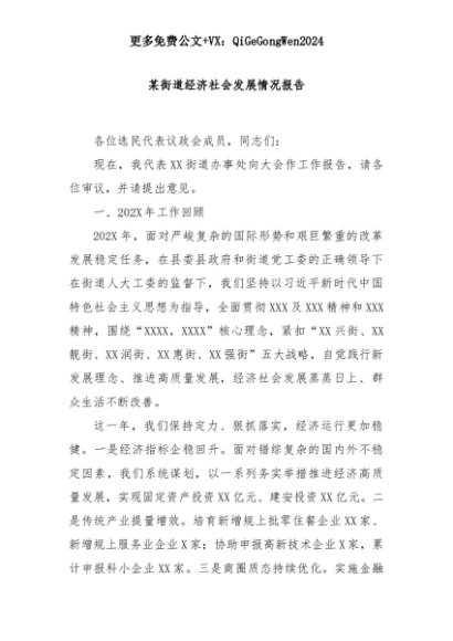 【七哥公文】2025年:某街道经济社会发展情况报告+更多免费公文+VX:QiGeGongWen2024+更多免费公文+VX:QiGeGongWen2024