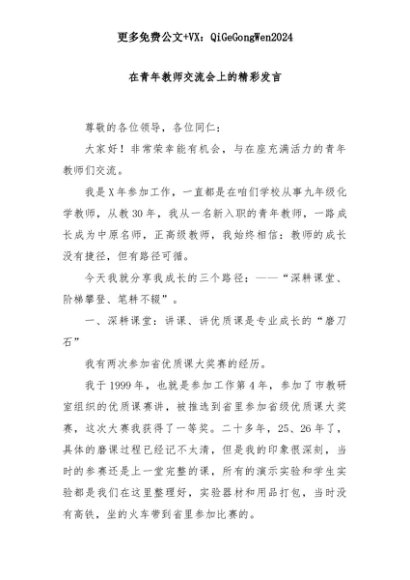【七哥公文】2025年:在青年教师交流会上的精彩发言+更多免费公文+VX:QiGeGongWen2024+更多免费公文+VX:QiGeGongWen2024