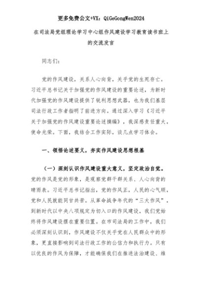 【七哥公文】2025年:在司法局党组理论学习中心组作风建设学习教育读书班上的交流发言+更多免费公文+VX:QiGeGongWen2024+更多免费公文+VX:QiGeGongWen2024