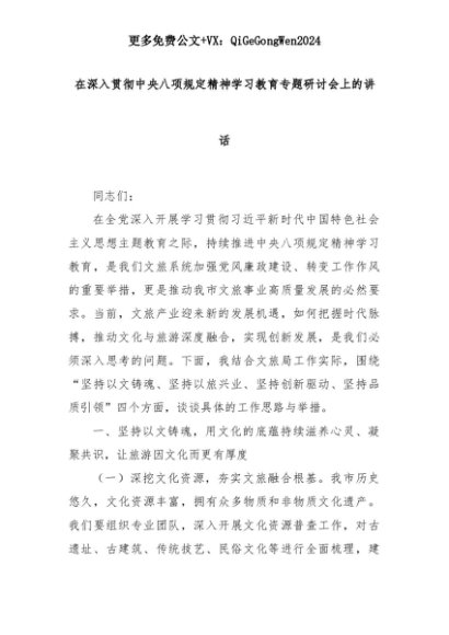 【七哥公文】2025年:在深入贯彻中央八项规定精神学习教育专题研讨会上的讲话+更多免费公文+VX:QiGeGongWen2024+更多免费公文+VX:QiGeGongWen2024