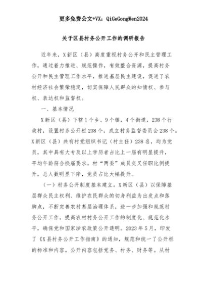 【七哥公文】2025年:关于区县村务公开工作的调研报告+更多免费公文+VX:QiGeGongWen2024+更多免费公文+VX:QiGeGongWen2024