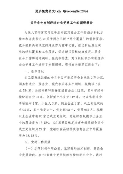 【七哥公文】2025年:关于非公有制经济企业党建工作的调研报告+更多免费公文+VX:QiGeGongWen2024+更多免费公文+VX:QiGeGongWen2024