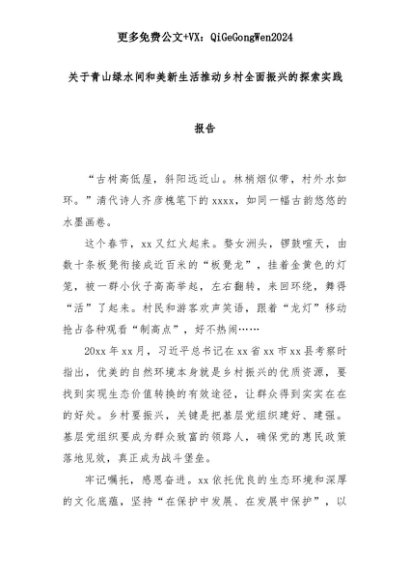 【七哥公文】2025年:关于青山绿水间和美新生活推动乡村全面振兴的探索实践报告+更多免费公文+VX:QiGeGongWen2024+更多免费公文+VX:QiGeGongWen2024