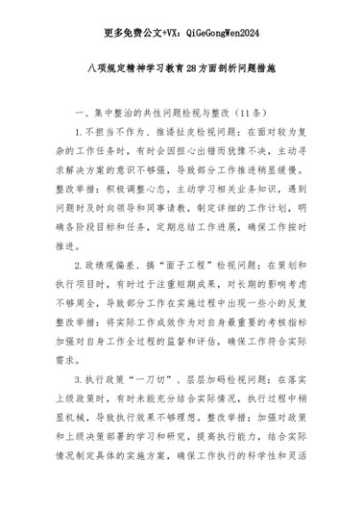 【七哥公文】2025年:八项规定精神学习教育28方面剖析问题措施+更多免费公文+VX:QiGeGongWen2024+更多免费公文+VX:QiGeGongWen2024