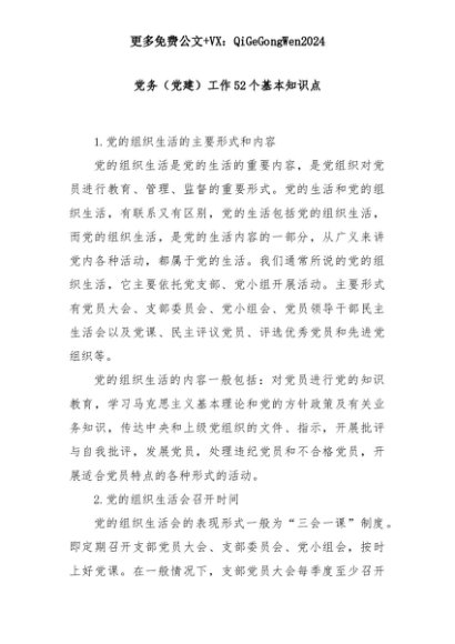 【七哥公文】2025年:党务(党建)工作52个基本知识点+更多免费公文+VX:QiGeGongWen2024+更多免费公文+VX:QiGeGongWen2024