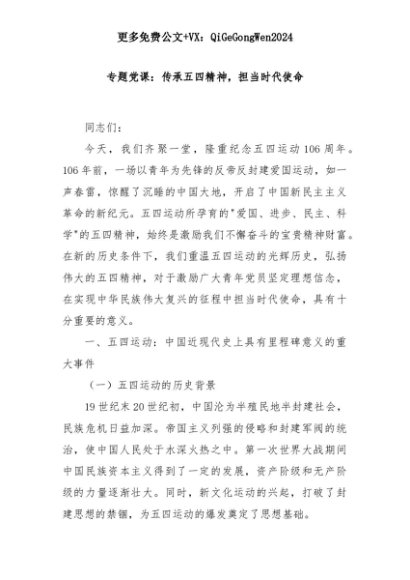 【七哥公文】2025年:专题党课:传承五四精神,担当时代使命+更多免费公文+VX:QiGeGongWen2024+更多免费公文+VX:QiGeGongWen2024