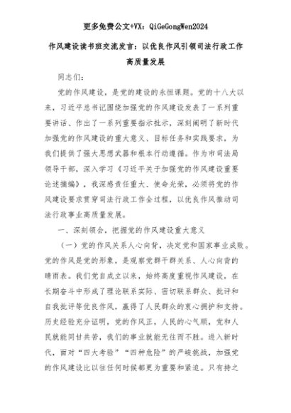 【七哥公文】2025年:作风建设读书班交流发言:以优良作风引领司法行政工作高质量发展+更多免费公文+VX:QiGeGongWen2024+更多免费公文+VX:QiGeGongWen2024