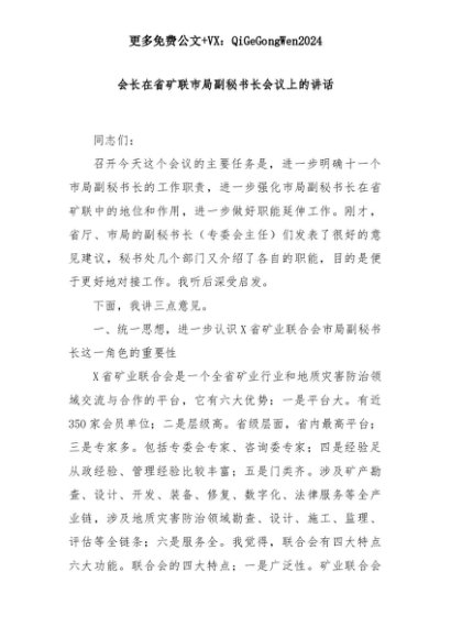 【七哥公文】2025年:会长在省矿联市局副秘书长会议上的讲话+更多免费公文+VX:QiGeGongWen2024+更多免费公文+VX:QiGeGongWen2024