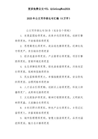 【七哥公文】2025年:2025年公文写作排比句汇编(6万字)+更多免费公文+VX:QiGeGongWen2024+更多免费公文+VX:QiGeGongWen2024