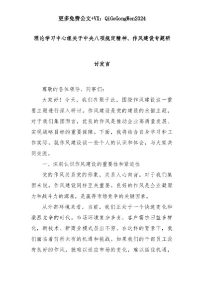 【七哥公文】2025年:理论学习中心组关于中央八项规定精神、作风建设专题研讨发言+更多免费公文+VX:QiGeGongWen2024+更多免费公文+VX:QiGeGongWen2024