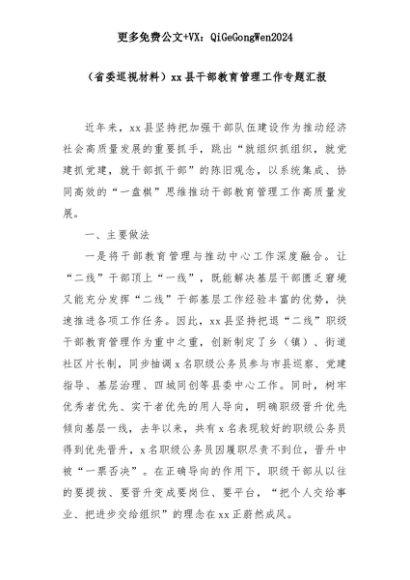 【七哥公文】2025年:(省委巡视材料)xx县干部教育管理工作专题汇报+更多免费公文+VX:QiGeGongWen2024+更多免费公文+VX:QiGeGongWen2024
