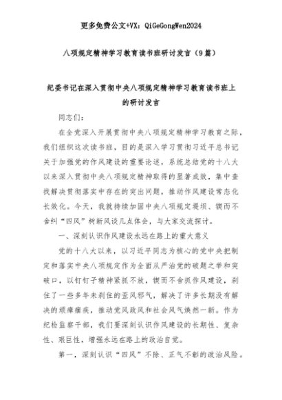 【七哥公文】2025年:(9篇)八项规定精神学习教育读书班研讨发言+更多免费公文+VX:QiGeGongWen2024+更多免费公文+VX:QiGeGongWen2024