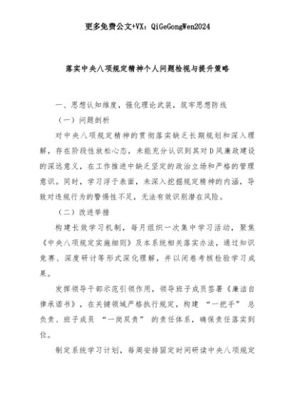 【七哥公文】2025年:落实中央八项规定精神个人问题检视与提升策略+更多免费公文+VX:QiGeGongWen2024+更多免费公文+VX:QiGeGongWen2024