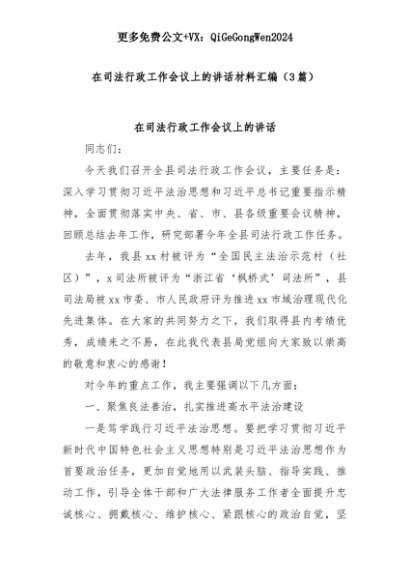 【七哥公文】2025年:(3篇)在司法行政工作会议上的讲话材料汇编+更多免费公文+VX:QiGeGongWen2024+更多免费公文+VX:QiGeGongWen2024
