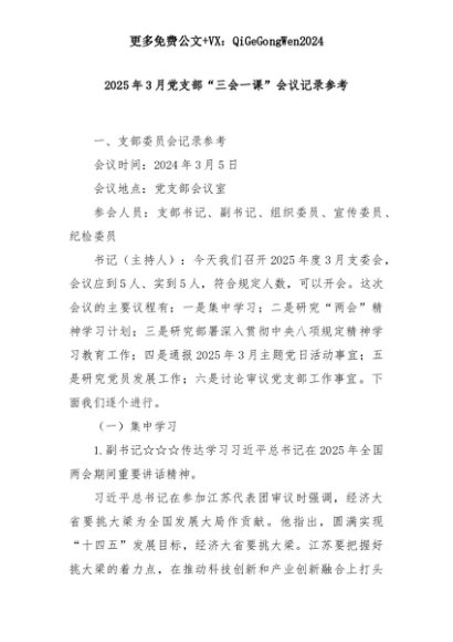 【七哥公文】2025年:2025年3月党支部“三会一课”会议记录参考+更多免费公文+VX:QiGeGongWen2024+更多免费公文+VX:QiGeGongWen2024