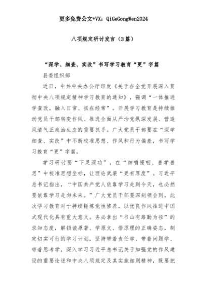 【七哥公文】2025年:(3篇)八项规定研讨发言+更多免费公文+VX:QiGeGongWen2024+更多免费公文+VX:QiGeGongWen2024