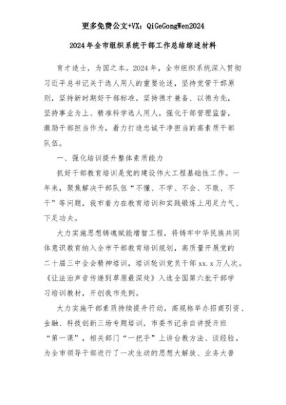【七哥公文】2025年:2024年全市组织系统干部工作总结综述材料+更多免费公文+VX:QiGeGongWen2024+更多免费公文+VX:QiGeGongWen2024