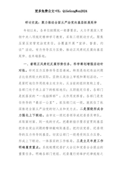 【七哥公文】2025年:研讨交流:聚力推动全面从严治党向基层拓展延伸+更多免费公文+VX:QiGeGongWen2024+更多免费公文+VX:QiGeGongWen2024