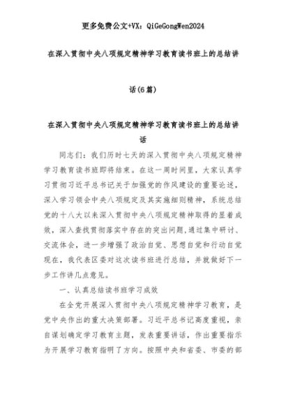 【七哥公文】2025年:(6篇)在深入贯彻中央八项规定精神学习教育读书班上的总结讲话+更多免费公文+VX:QiGeGongWen2024+更多免费公文+VX:QiGeGongWen2024