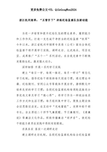 【七哥公文】2025年:浙江杭州烟草:“五管齐下”淬炼纪检监察队伍新动能+更多免费公文+VX:QiGeGongWen2024+更多免费公文+VX:QiGeGongWen2024