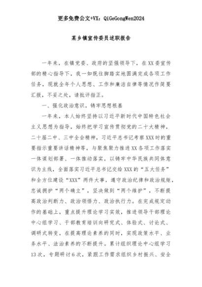 【七哥公文】2025年:某乡镇宣传委员述职报告+更多免费公文+VX:QiGeGongWen2024+更多免费公文+VX:QiGeGongWen2024