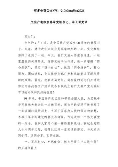 【七哥公文】2025年:文化广电和旅游局党组书记、局长讲党课+更多免费公文+VX:QiGeGongWen2024+更多免费公文+VX:QiGeGongWen2024