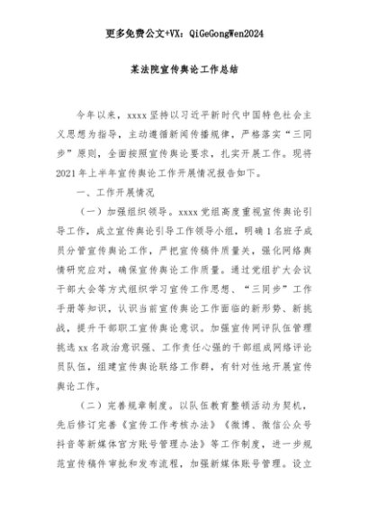 【七哥公文】2025年:某法院宣传舆论工作总结+更多免费公文+VX:QiGeGongWen2024+更多免费公文+VX:QiGeGongWen2024