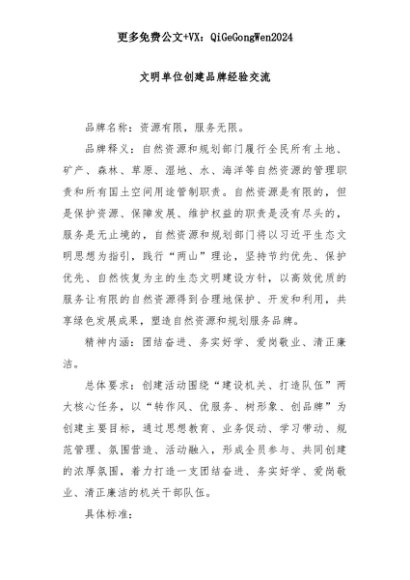 【七哥公文】2025年:文明单位创建品牌经验交流+更多免费公文+VX:QiGeGongWen2024+更多免费公文+VX:QiGeGongWen2024