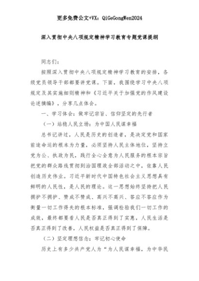 【七哥公文】2025年:深入贯彻中央八项规定精神学习教育专题党课提纲+更多免费公文+VX:QiGeGongWen2024+更多免费公文+VX:QiGeGongWen2024