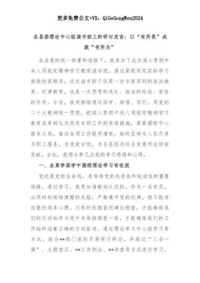 【七哥公文】2025年:在县委理论中心组读书班上的研讨发言:以“有所畏”成就“有所为”+更多免费公文+VX:QiGeGongWen2024+更多免费公文+VX:QiGeGongWen2024