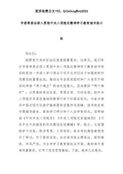 【七哥公文】2025年:市委常委会深入贯彻中央八项规定精神学习教育读书班小结+更多免费公文+VX:QiGeGongWen2024+更多免费公文+VX:QiGeGongWen2024