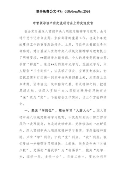 【七哥公文】2025年:市管领导读书班交流研讨会上的交流发言+更多免费公文+VX:QiGeGongWen2024+更多免费公文+VX:QiGeGongWen2024