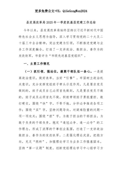 【七哥公文】2025年:县发展改革局2025年一季度抓基层党建工作总结+更多免费公文+VX:QiGeGongWen2024+更多免费公文+VX:QiGeGongWen2024