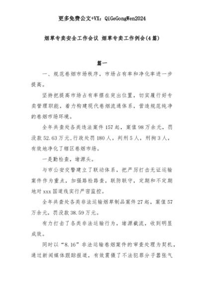 【七哥公文】2025年:(4篇)烟草专卖安全工作会议 烟草专卖工作例会+更多免费公文+VX:QiGeGongWen2024+更多免费公文+VX:QiGeGongWen2024