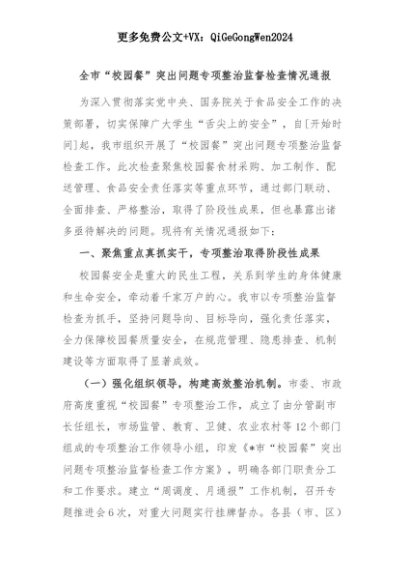 【七哥公文】2025年:全市“校园餐”突出问题专项整治监督检查情况通报+更多免费公文+VX:QiGeGongWen2024+更多免费公文+VX:QiGeGongWen2024