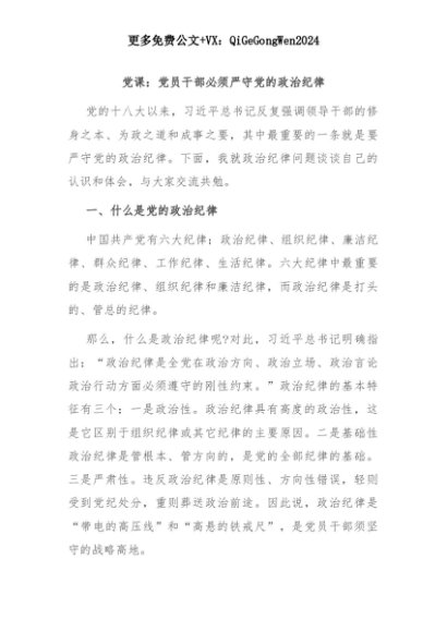 【七哥公文】2025年:党课:党员干部必须严守党的政治纪律+更多免费公文+VX:QiGeGongWen2024+更多免费公文+VX:QiGeGongWen2024