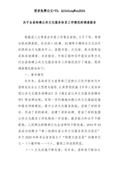 【七哥公文】2025年:关于全县构建公共文化服务体系工作情况的调查报告+更多免费公文+VX:QiGeGongWen2024+更多免费公文+VX:QiGeGongWen2024