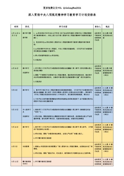 【七哥公文】2025年:中央八项规定精神学习教育学习计划安排表+更多免费公文+VX:QiGeGongWen2024+更多免费公文+VX:QiGeGongWen2024