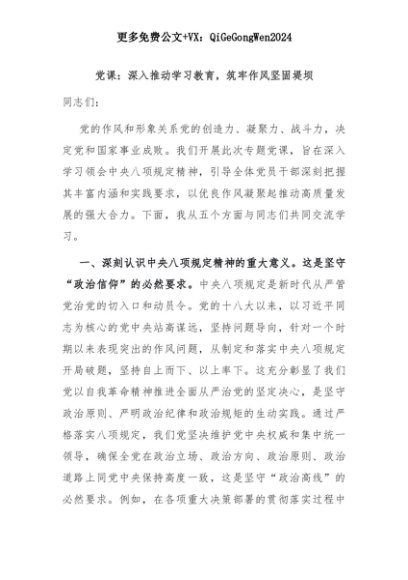 【七哥公文】2025年:党课:深入推动学习教育,筑牢作风坚固堤坝+更多免费公文+VX:QiGeGongWen2024+更多免费公文+VX:QiGeGongWen2024