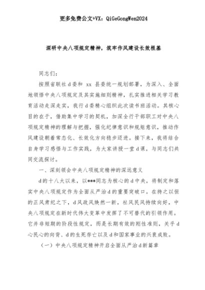 【七哥公文】2025年:党课:深研中央八项规定精神,筑牢作风建设长效根基+更多免费公文+VX:QiGeGongWen2024+更多免费公文+VX:QiGeGongWen2024