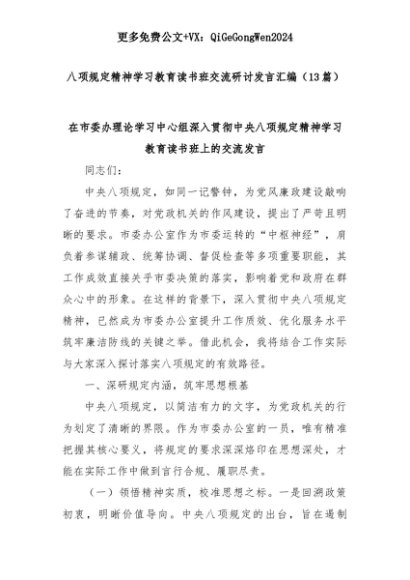 【七哥公文】2025年:(13篇)八项规定精神学习教育读书班交流研讨发言汇编+更多免费公文+VX:QiGeGongWen2024+更多免费公文+VX:QiGeGongWen2024