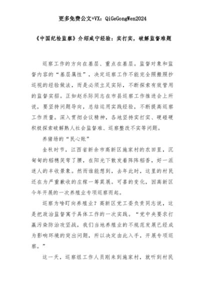 【七哥公文】2025年:《中国纪检监察》介绍咸宁经验:实打实,破解监督难题+更多免费公文+VX:QiGeGongWen2024+更多免费公文+VX:QiGeGongWen2024